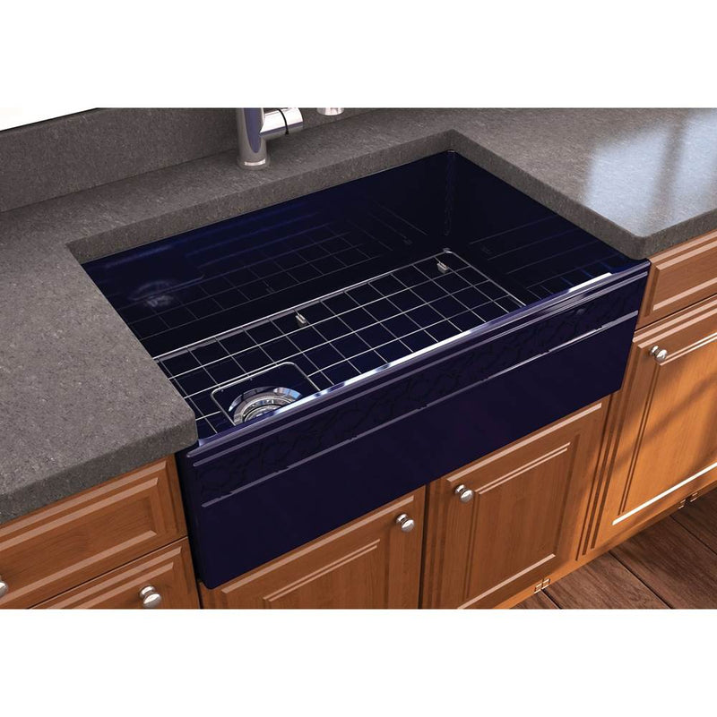 BOCCHI Vigneto Apron Front Fireclay 30 in. Single Bowl Kitchen Sink with Protective Bottom Grid and Strainer