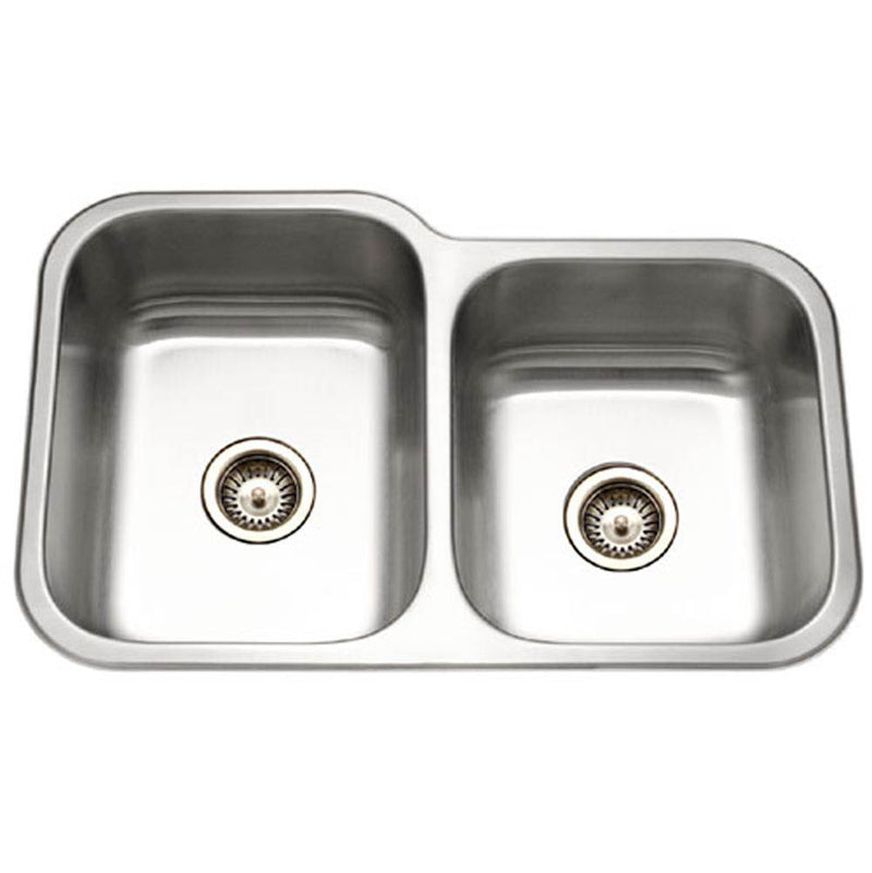 Hamat Undermount Stainless Steel 60/40 Double Bowl Kitchen Sink, Small bowl Right