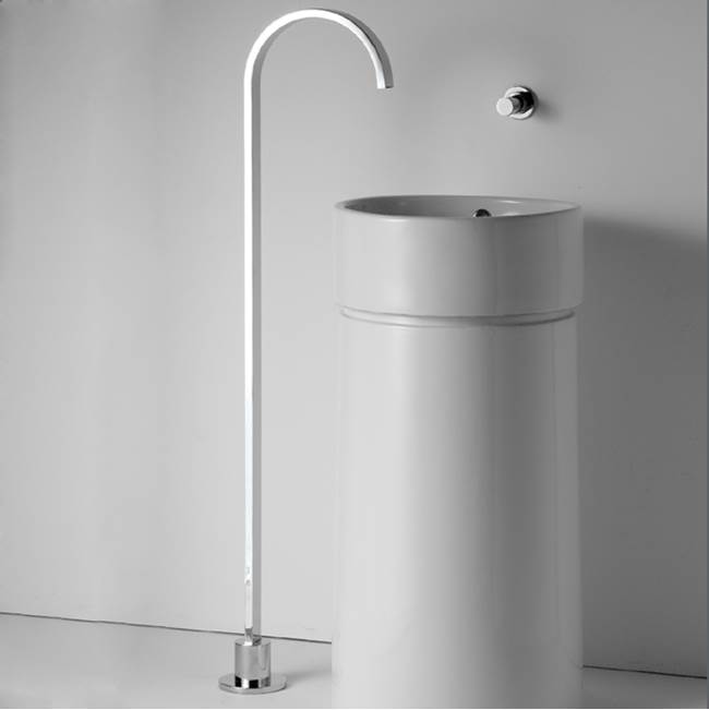 Lacava Floor-standing spout and wall-mount mixer with knob handle. Includes rough-in and trim. Water flow rate: 4.2 gpm at 60 psi