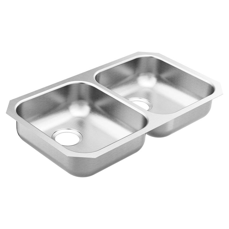 Moen 1800 Series 31.75-inch 18 Gauge Undermount Double Bowl Stainless Steel Kitchen Sink, Rear Drain